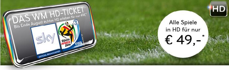 für alle Sky-Abonnenten gibt es nun ein neues HD-Angebot. Sky bietet die komplette WM 2010 in HD an. Für 49 € kann man dann die WM 2010 in Südafrika live und in HD verfolgen. .