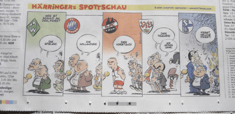 Nach der Länderspielpause, geht es nun wieder los. Bereits gestern besiegte der BVB den 1.FC Köln in der Nachspielzeit mit 1:2 – Heute geht es weiter. Mit Hannover, Bayern, Schalke, Mainz & Co. Aber wie kann man einen Spieltag besser beginnen, als mit einer kleinen, aber feinen Karikatur? Mit viel Witz, schafft es eine Karikatur mehr zu sagen, als tausend Worte.
