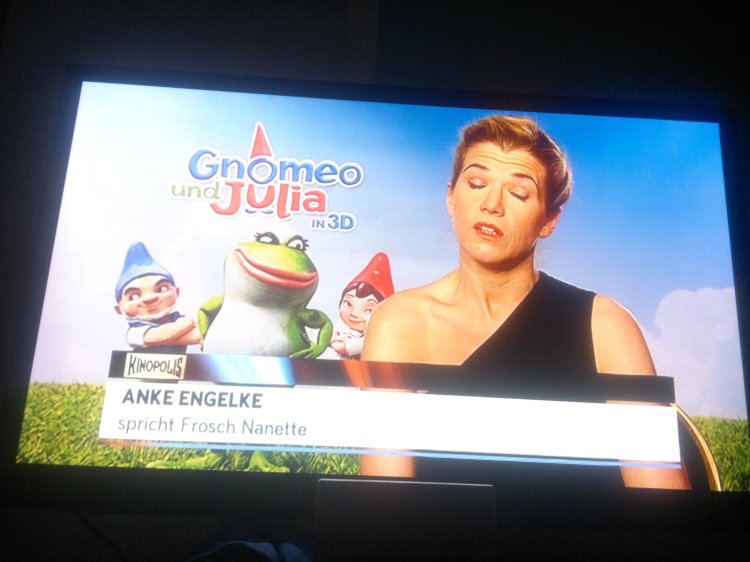 Mit einem Bericht zu „Gnomeo und Julia, der von Anke Engelke synchronisiert wurde, sehen wir eine weitere Film-Empfehlung. Wir sehen Anke bei der Arbeit, wie sie den Film vertont, außerdem einige Filmszenen. Ein Sprecher gibt uns dazu noch weitere Informationen.