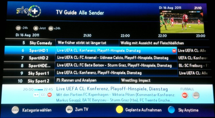 Der EPG gefällt, wirkt sehr aufgeräumt und das Livebild ist nun auf der rechten Seite. Über den EPG bekommt man dann ab dem 23. August auch Zugang zu Sky Anytime.