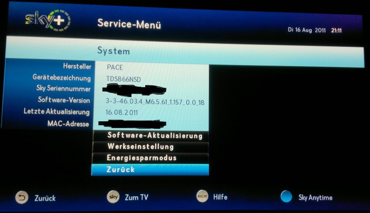 Seltsam – ich habe nun die Sky-Hotline bemüht. Dort ist man auch ratlos. Leider soll ich auf Werkseinstellungen zurücksetzen da vermutet wird, dass das Update nicht 100prozentig korrekt gelaufen ist. Dazu habe ich aber erst heute Abend Zeit. Wenn das nicht hilft gibts ein Austauschgerät. Ich halte euch mal auf dem Laufenden.