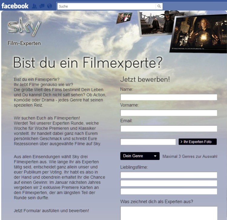 Seit dem heutigen Dienstag gibt es für viele Sky-Abonnenten nicht nur Sky Go kostenlos, sondern mit „Dein Sky Film“ auch eine neue Facebook-Seite, die sich explizit mit dem Thema „Film“ beschäftigen wird.