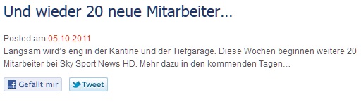 Wir sahen ein Bild, dass man nicht vergrößern konnte, sowie einen einzigen Satz – Hier fragte ich mich, was das denn solle? Ein Blog-Eintrag? Wirklich? – Der nächte Artikel mit der Überschrift „Rückblick: Mitarbeiter Get-Together“ war dann schon um einiges besser. Wir erfuhren, dass am 12. September insgesamt 200 neue Mitarbeiter ihren Dienst bei Sky angetreten haben. Man schrieb zwar nicht sonderlich viel, aber es war ein Anfang.