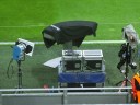 Spannend war natürlich auch immer der Blick auf den Rasen. Wir konnten sehen, wie Sky sich auf die Sendung vorbereitet hat. Hier z. B. Patrick Wasserziehr.