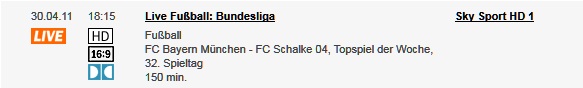 Auf Sky Sport HD2, sowie auf der Einzeloption zeigt man das Geschehen und die Berichterstattung bis 18:15 Uhr live aus Dortmund. Pünktlich zum Topspiel gibt man dann nach München ab und bereitet die Zuschauer auf das Spiel vor. Natürlich kann man auch nochmal nach Dortmund geben, aber das Hauptaugenmerk sollte auf Bayern vs. Schalke liegen. Ich bin der Meinung, dass man nach dem Spiel entweder die Übertragung koppeln sollte oder sich der Haupt-Übertragung, die auf HD1 läuft, anschließen sollte.