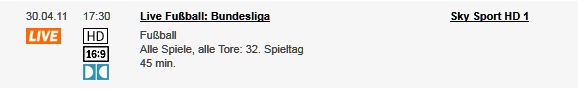Sky berichtet live auf Sky Sport HD1 über alles, was in Dortmund und was in den anderen Stadien passierte. Eine komplette Meisterfeier, viele Interviews, Reaktionen aus anderen Stadien. Ebenfalls sollte es „Alle Spiele, Alle Tore“ geben. Eine Mischung aus Feiern, Emotionen, sowie aktueller Berichterstattung.
